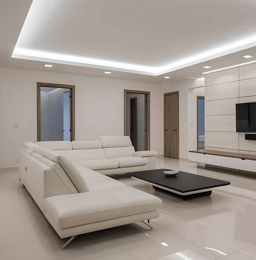 여기에 무몰딩, 무문선 공법을 더하면 시각적으로 걸리는 부분 없이 매끈하게 이어지는 라인을 완성하며, 천장에 매립하는 라인 조명이나 마그네틱 조명을 활용하면 층고가 더 높아 보이는 효과까지 얻을 수 있습니다.