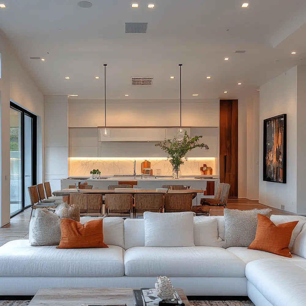또한 스마트 홈 시스템을 통해 조명, 온도, 가전을 자동으로 제어하며 생활의 편의성을 높이고, 공간 구조에서는 거실과 주방을 연결하는 개방형 설계가 선호합니다.