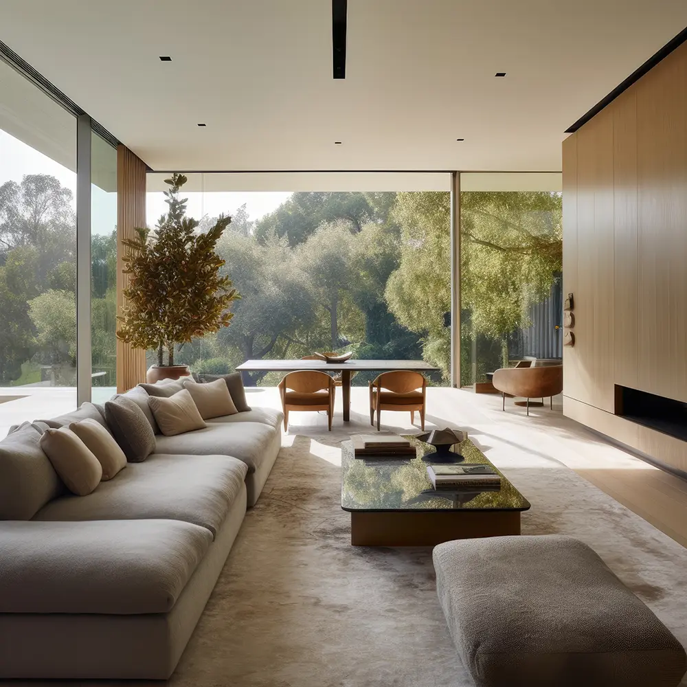 은은한 베이지 톤의 패브릭 소파는 편안함과 고급스러움을 동시에 표현 가능하며 이러한 중성색 소파는 다양한 컬러의 쿠션이나 담요로 계절마다 분위기를 바꾸기에도 적합합니다. 우드와 패브릭의 조합은 차갑지 않으면서도 현대적인 감각을 유지할 수 있게 해주죠.