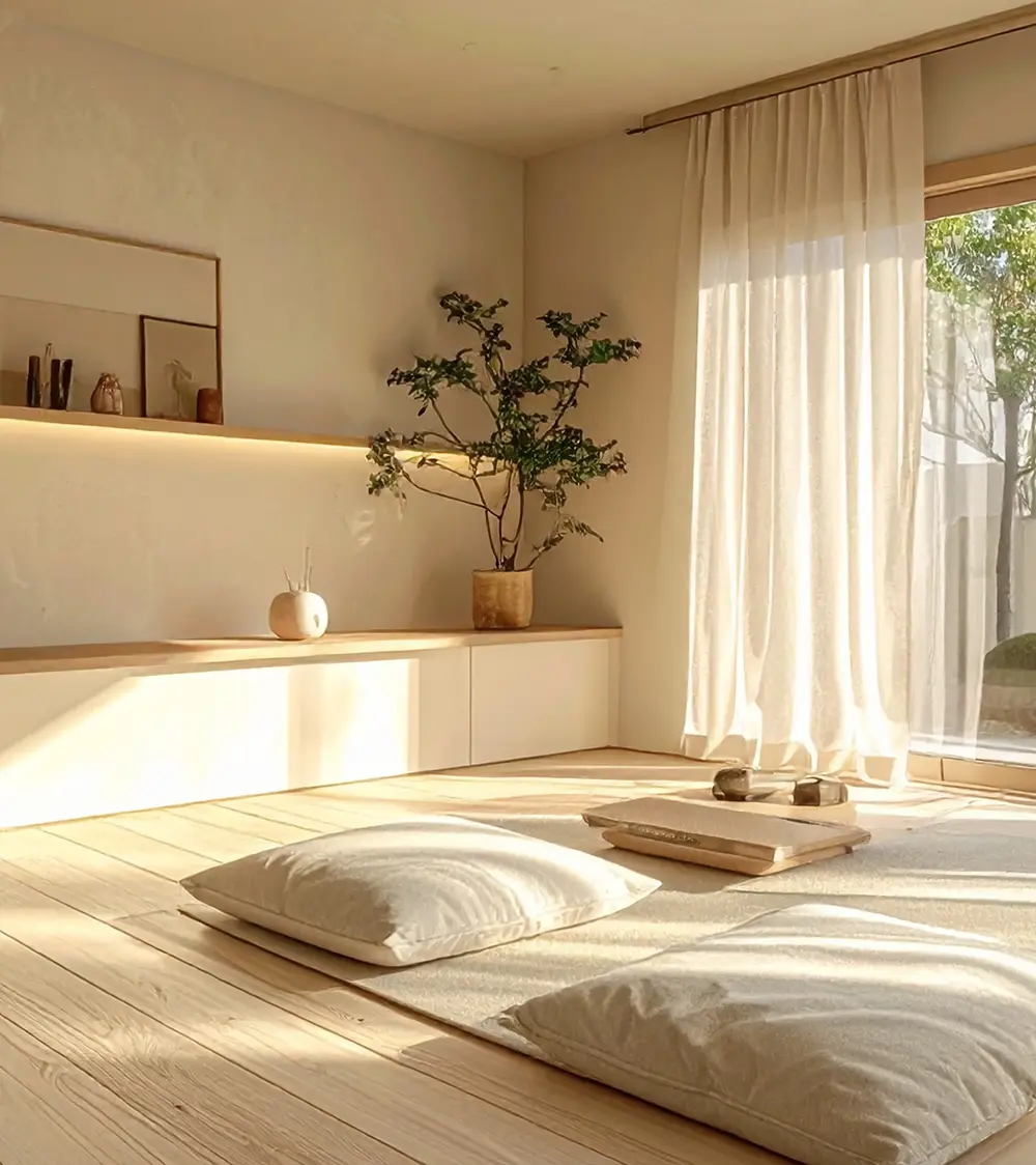 재팬디 스타일 시공에서 가장 중요한 점은 톤과 여백의 일관성으로 벽, 바닥, 가구, 문선까지 색을 3~4가지 자연톤 안에서 통일해야 공간이 고급스럽게 보이며 수납을 최대한 벽면에 숨겨 생활감이 드러나지 않도록 설계하는 것이 핵심이죠.
