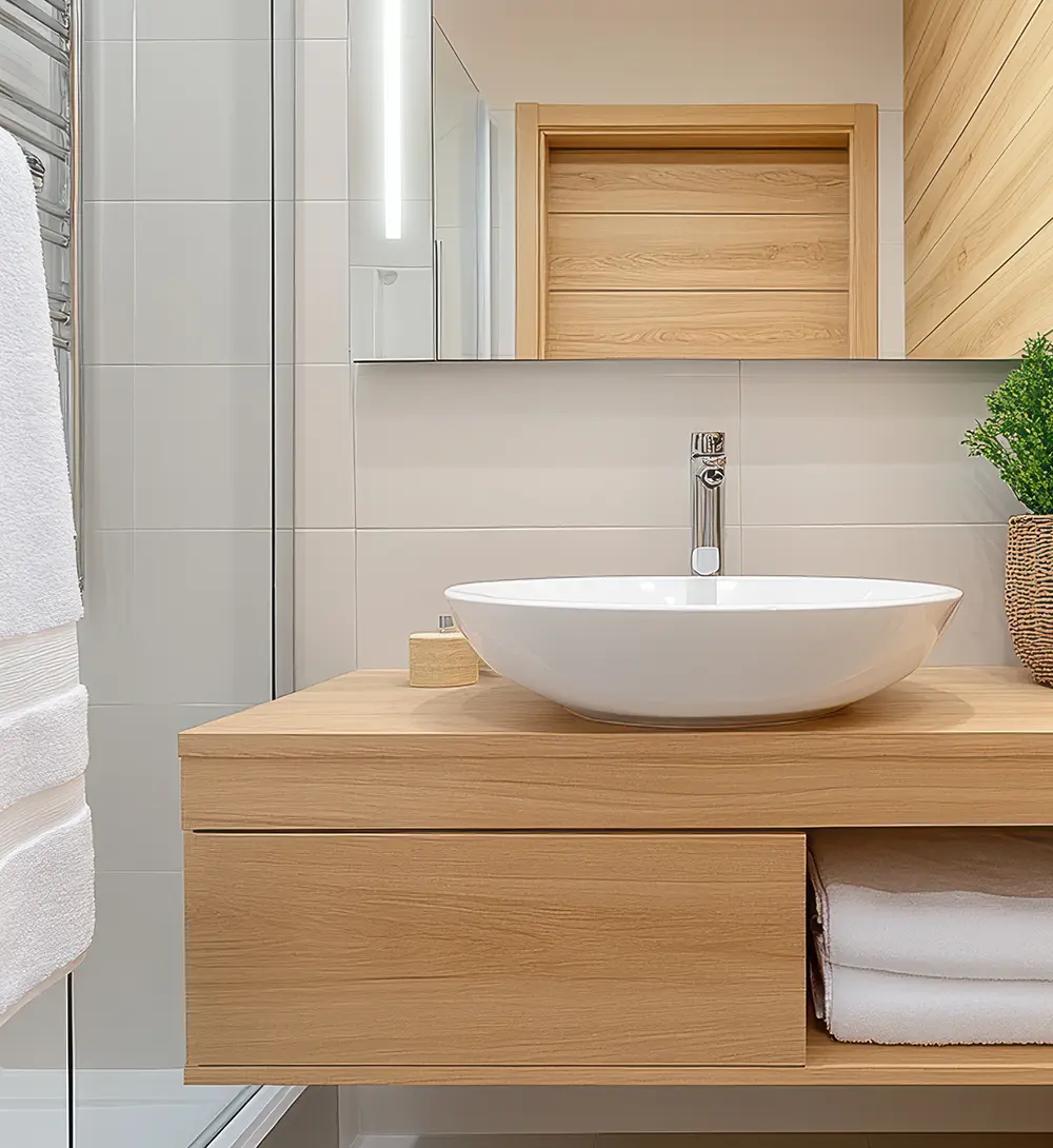 저희는 수많은 현장 경험을 통해 다져진 정밀 시공 노하우로, 보이지 않는 배수관부터 눈에 보이는 타일 한 장의 라인까지 완벽한 밸런스를 구현해 드리고 있는데요. 고객님의 취향을 반영한 1:1 맞춤 설계와 감각적인 소재로 시간이 흘러도 변치 않는 모던한 욕실을 제안드릴게요.
