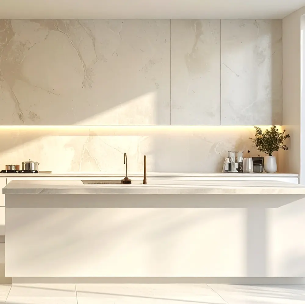 주방은 레이아웃에 따라 비용이 달라집니다. 기존 구조를 유지하면 비용이 비교적 안정적이지만, 아일랜드 설치나 대면형 구조로 변경하면 설비와 전기 공사가 추가되면서 예산이 크게 증가합니다.
